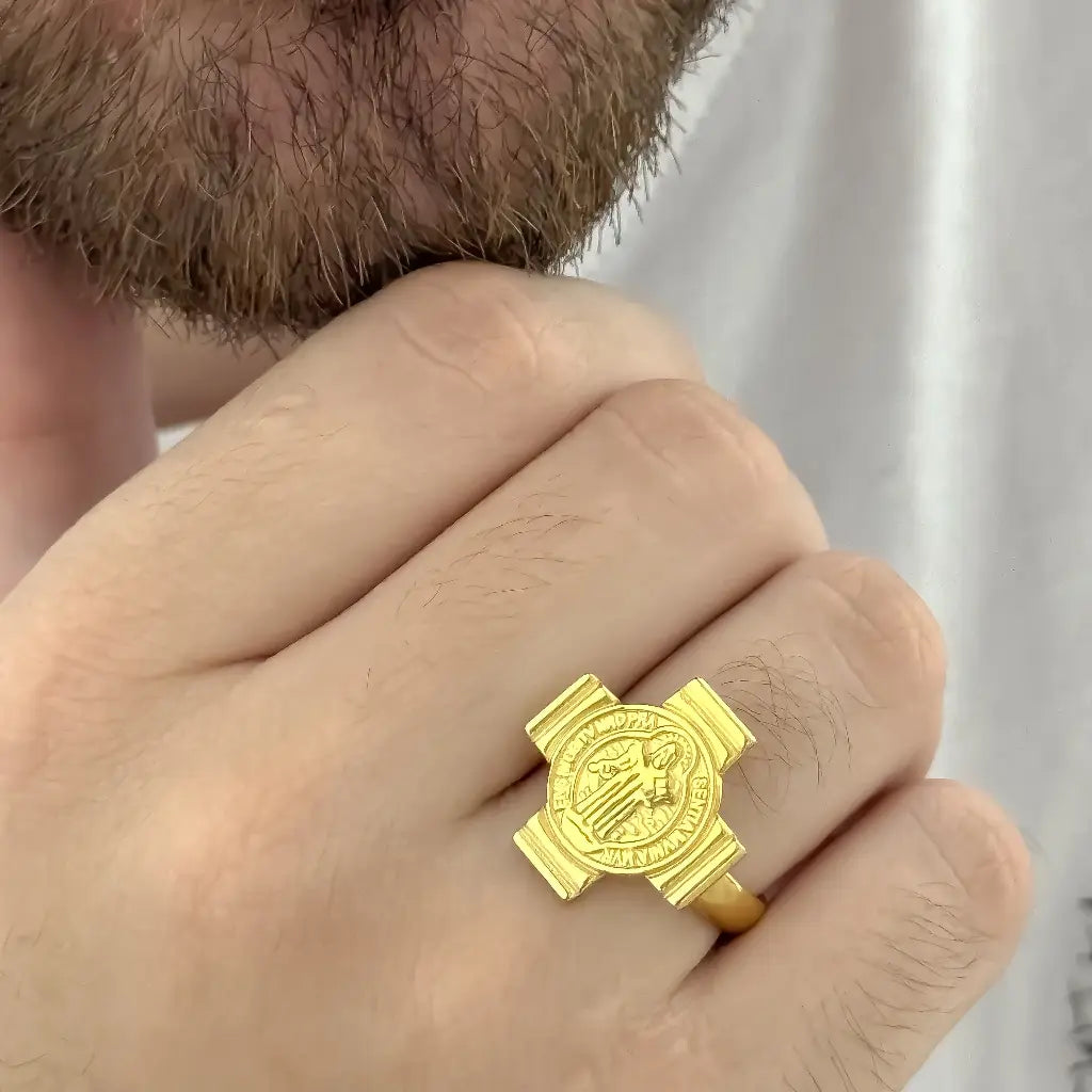 Llevar el anillo de San Benito en acero es una manera fantástica de mantener la fe cerca y sentirte protegido en todo momento