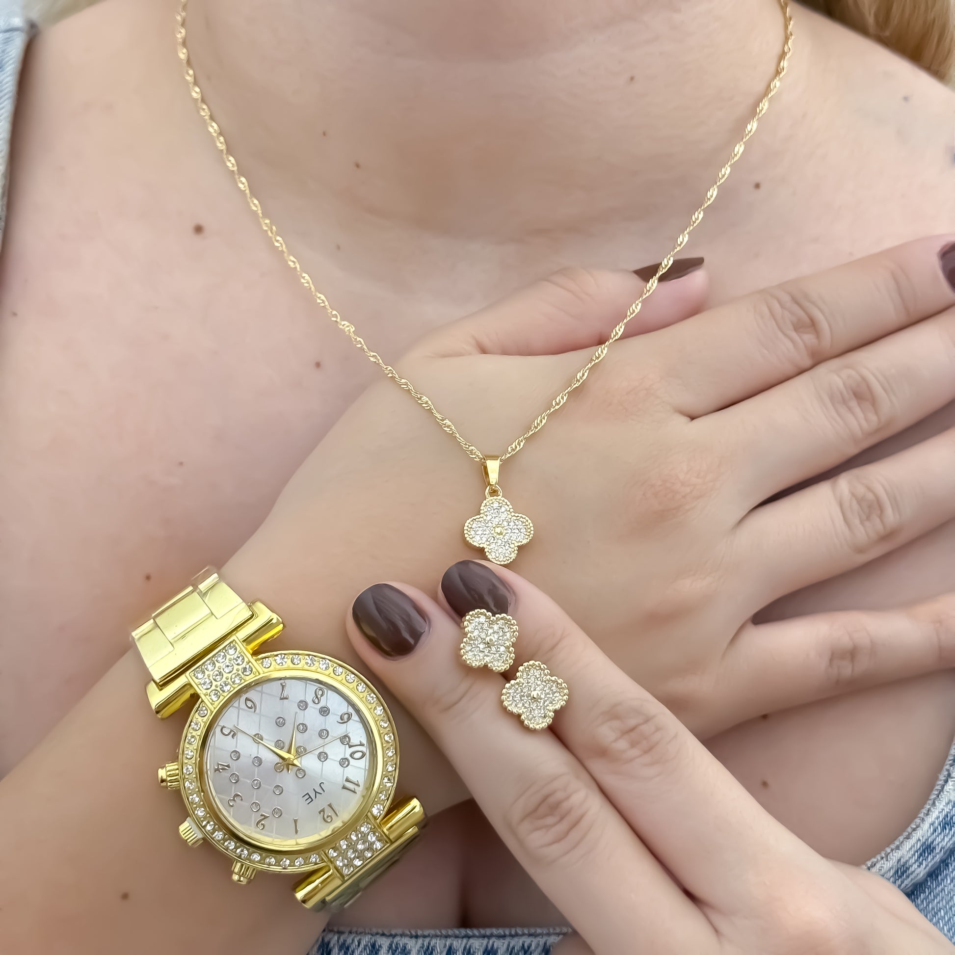 Cadena y Pulsera de Trébol Buena Suerte para Cada Día + Reloj