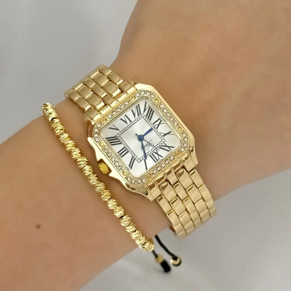 Combina lo mejor del diseño moderno y la elegancia clásica con este increíble paquete que incluye un Reloj para Dama y una Manilla bañada en Oro de 18K, todo respaldado con una garantía de calidad.